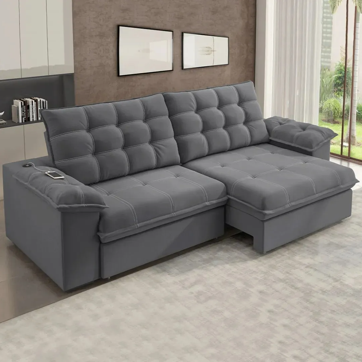 Sofá 4 Lugares Retrátil e Reclinável com Entrada USB Quebec